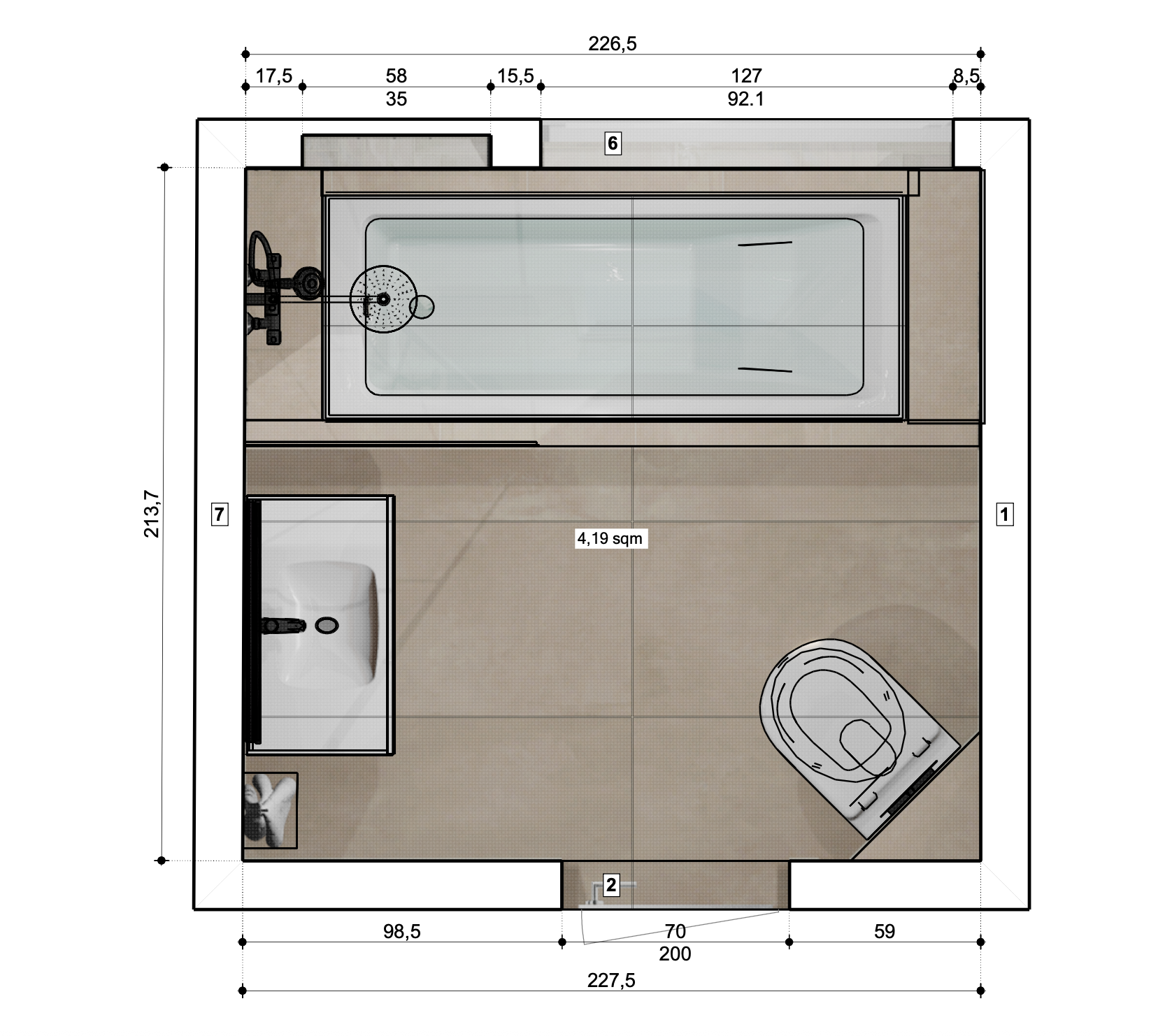 Badeværelser findes i mange former og størrelser. Vi kan skræddersy badeværelset, så det passer til jeres behov og ønsker.